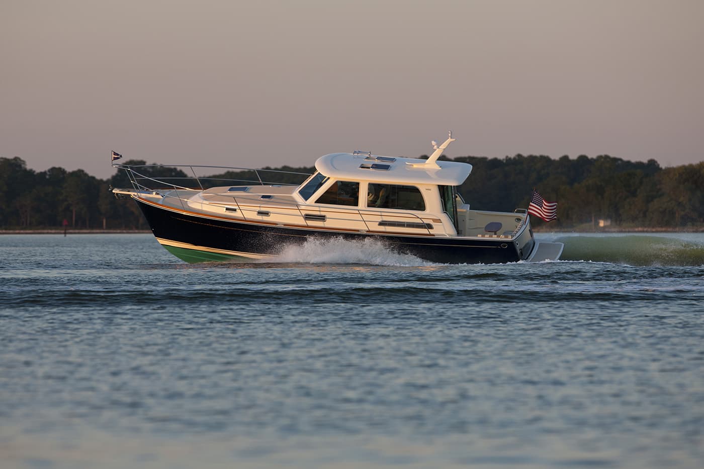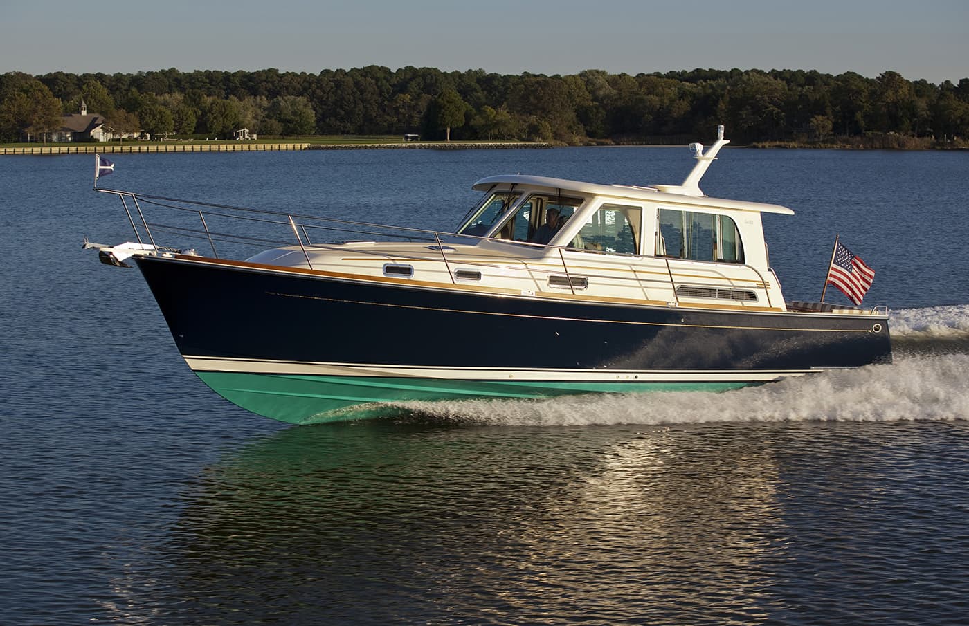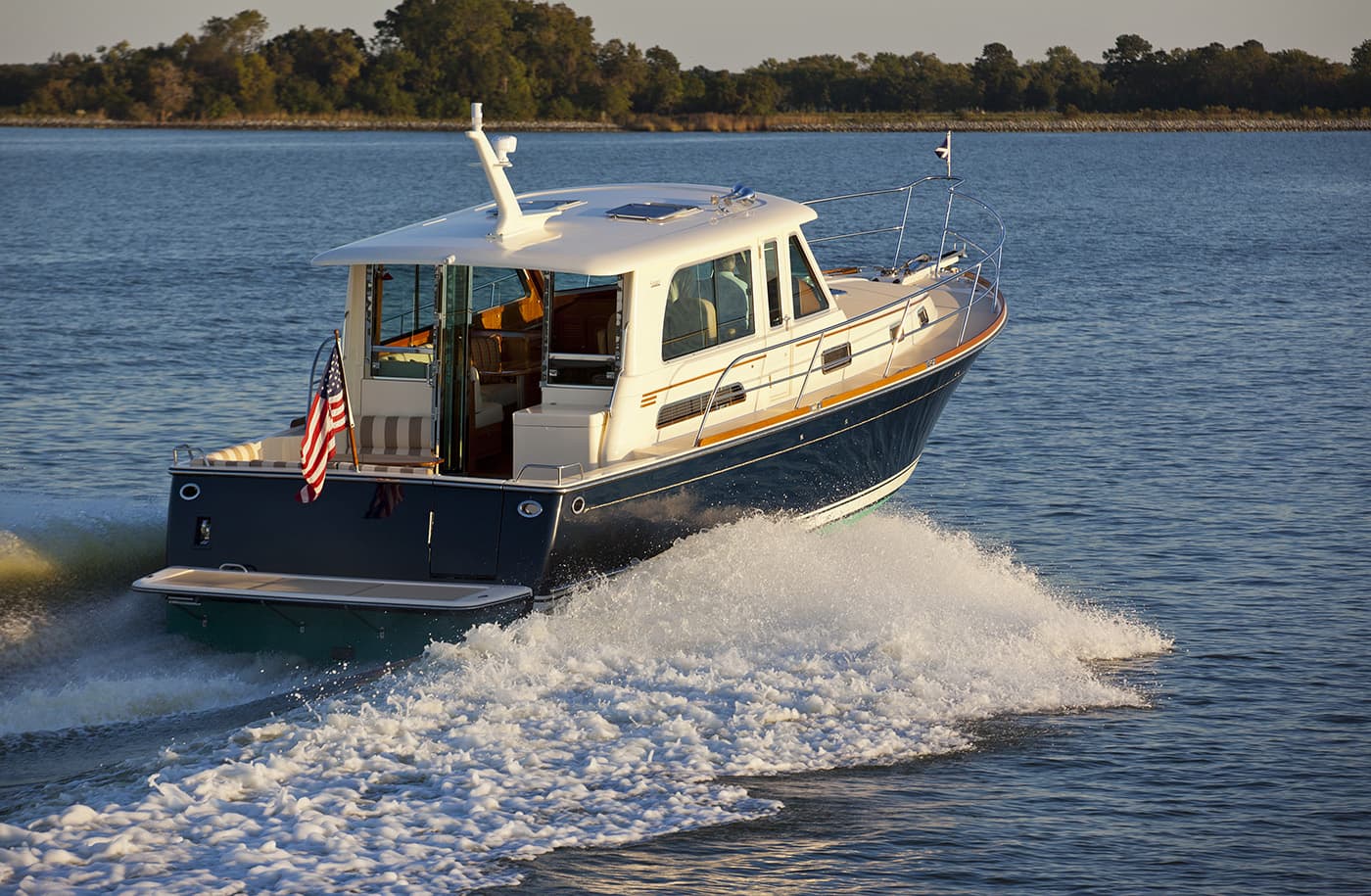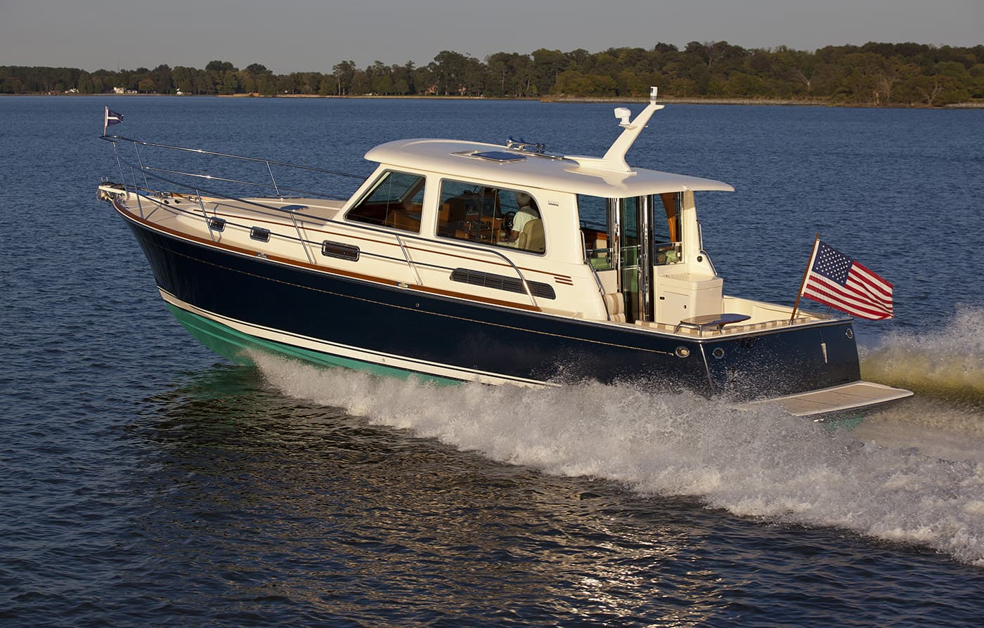 In production from 2011 through 2020, the Sabre 42 Salon Express delivered quiet, efficient performance and precise handling thanks to its pod drive propulsion, while offering the timeless elegance Sabre is known for. Also available in a Flybridge version, it featured a bright, open salon with 360-degree visibility, a half-up galley integrated into the social space, and a forward master stateroom with an island berth.