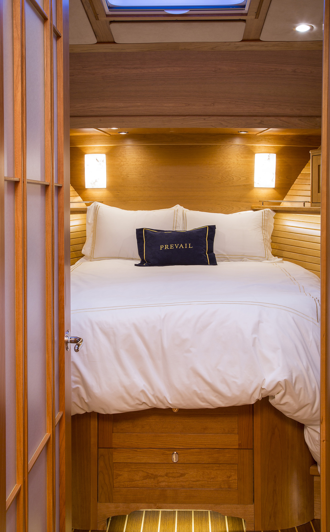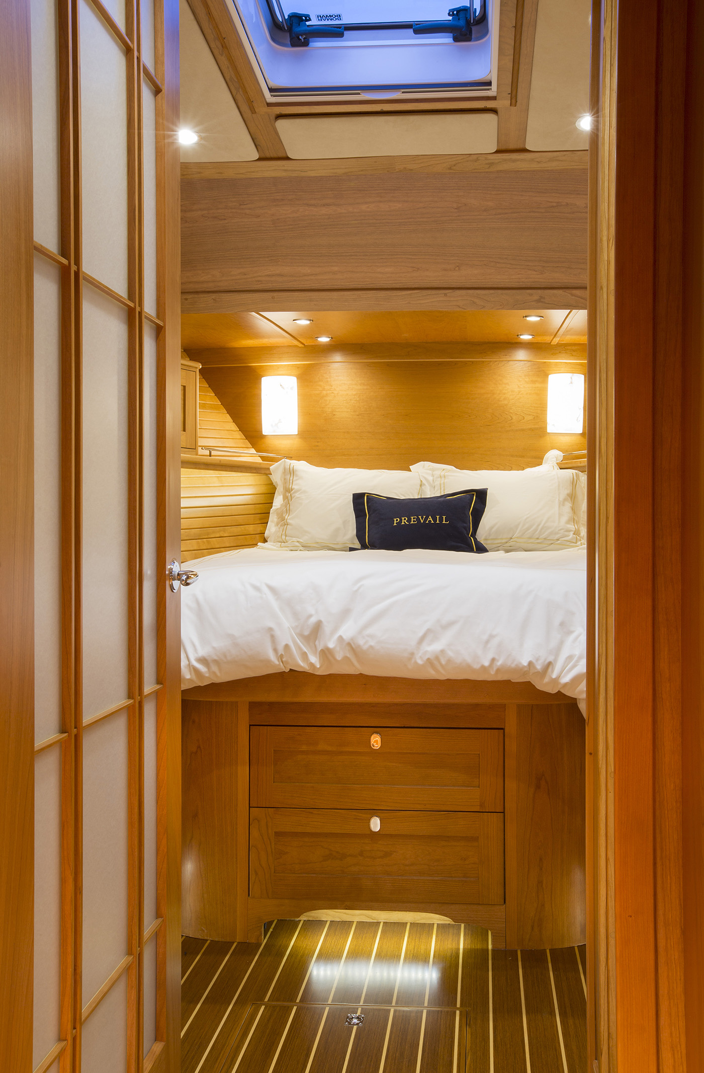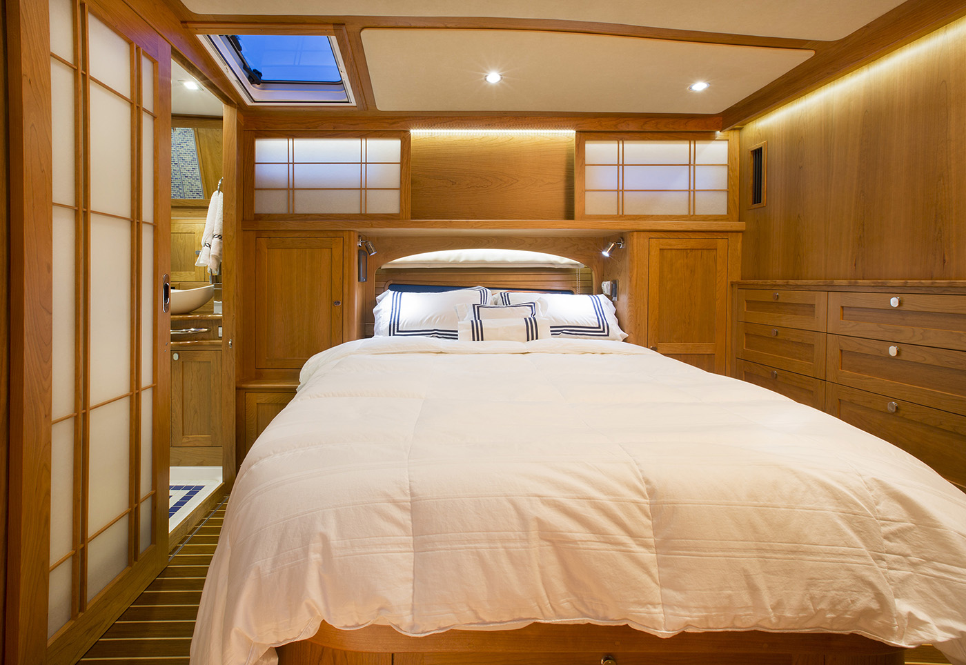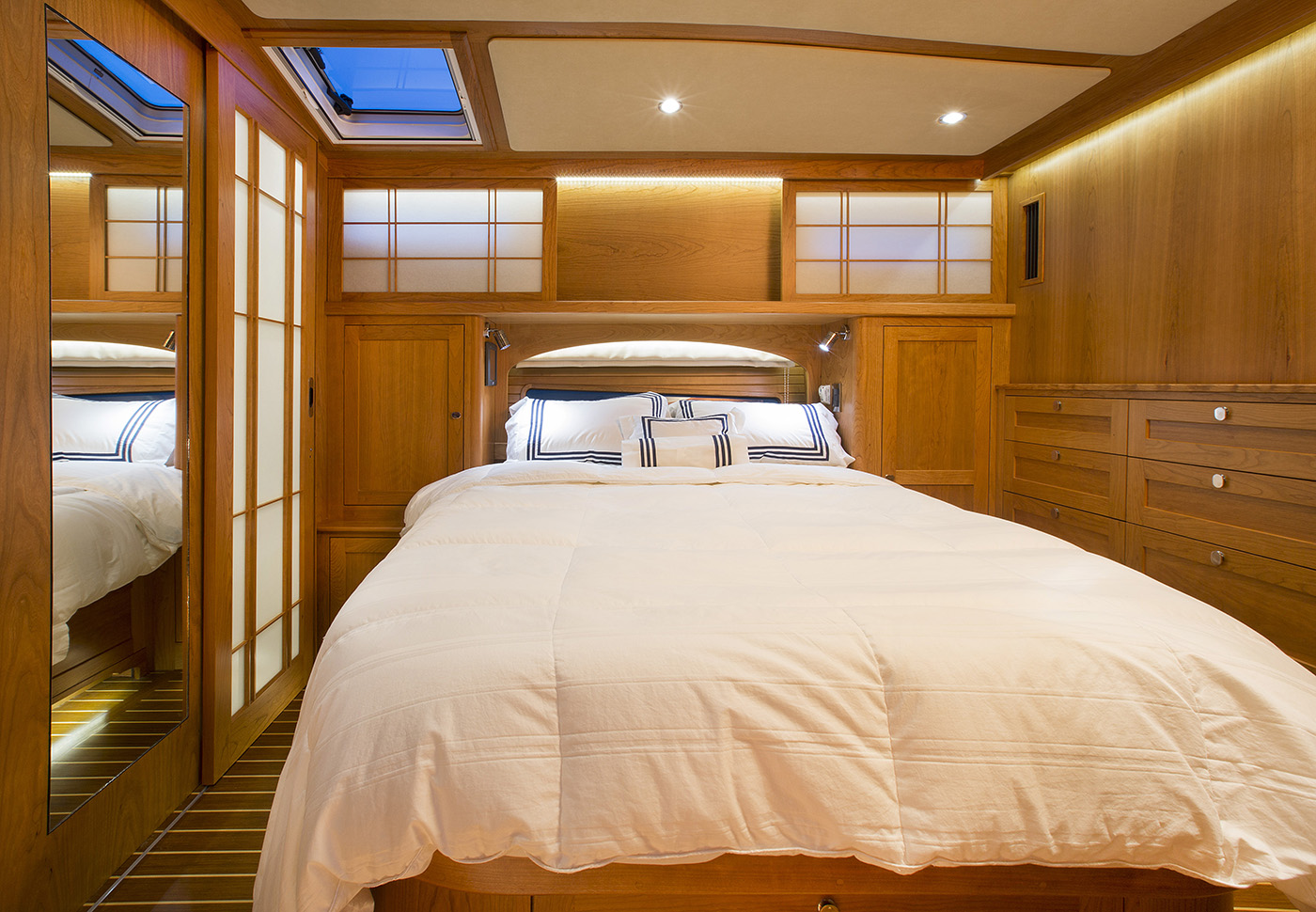 Her interior featured elegant woodwork, refined proportions, and thoughtful touches like maple inlays and Shoji screens, creating a warm, luxurious atmosphere throughout.
