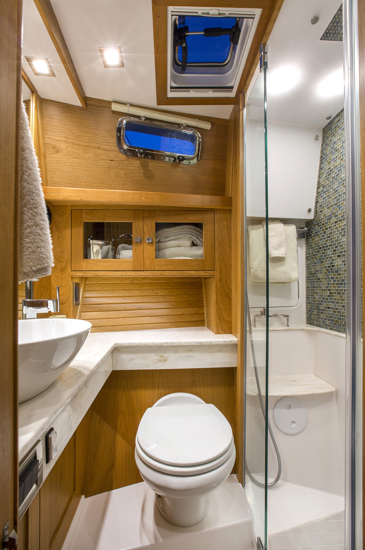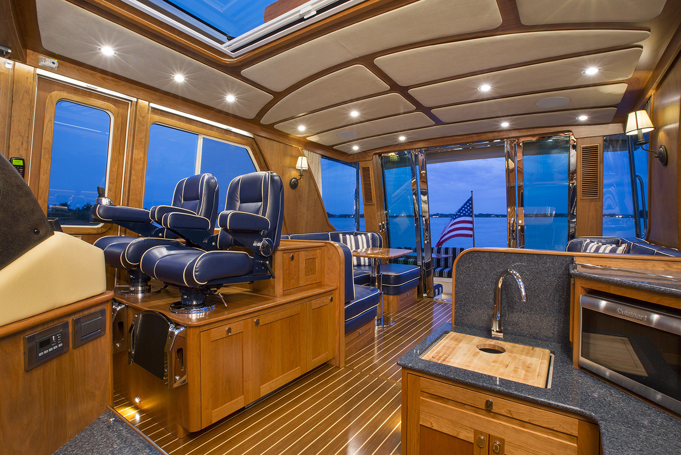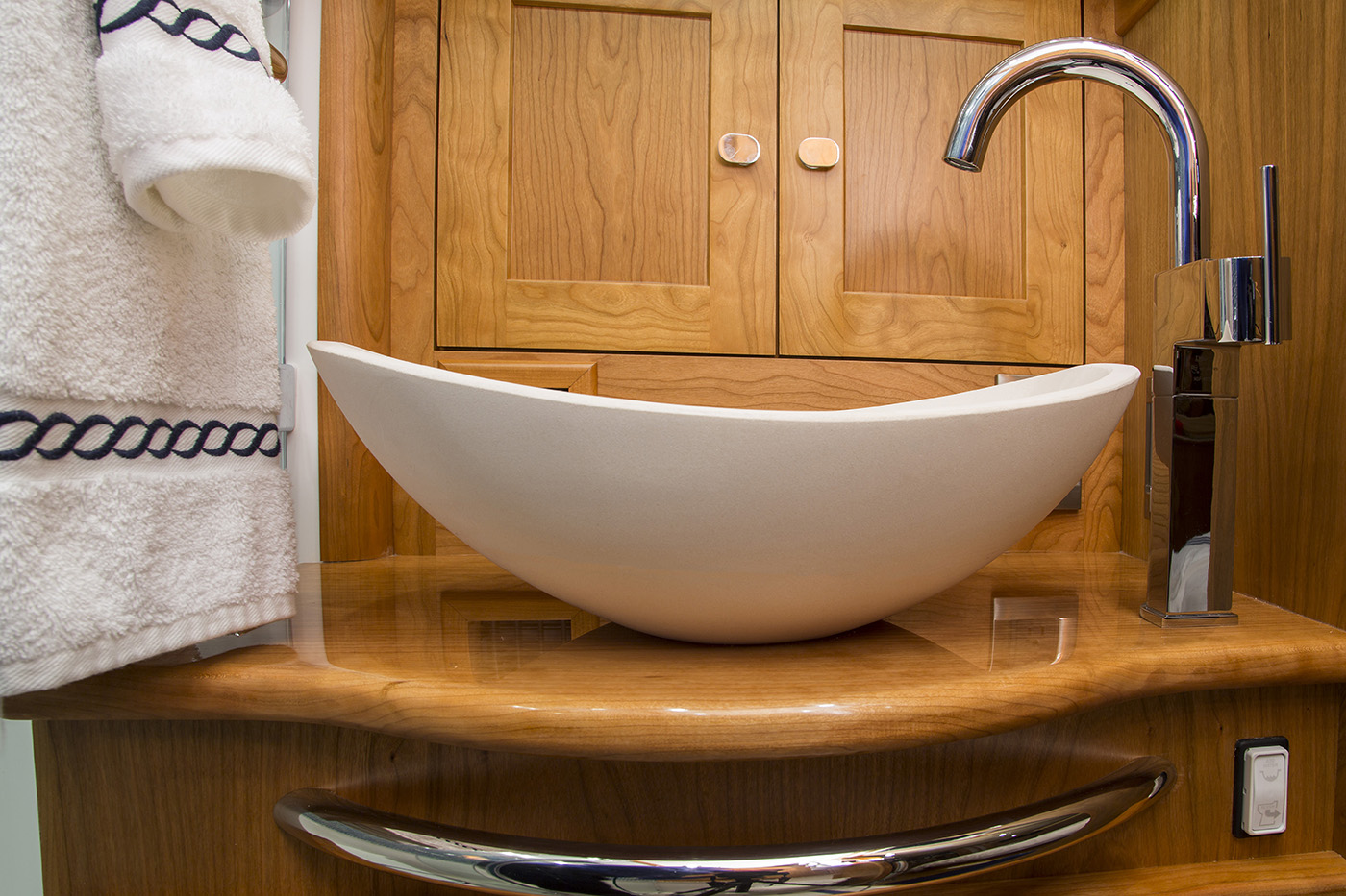 Her interior featured elegant woodwork, refined proportions, and thoughtful touches like maple inlays and Shoji screens, creating a warm, luxurious atmosphere throughout.
