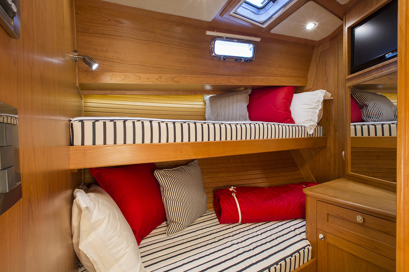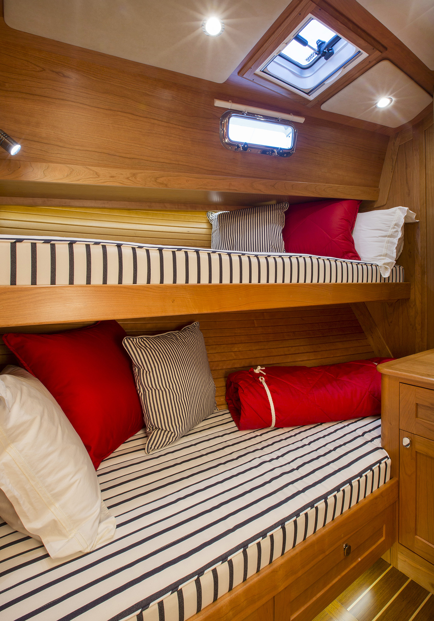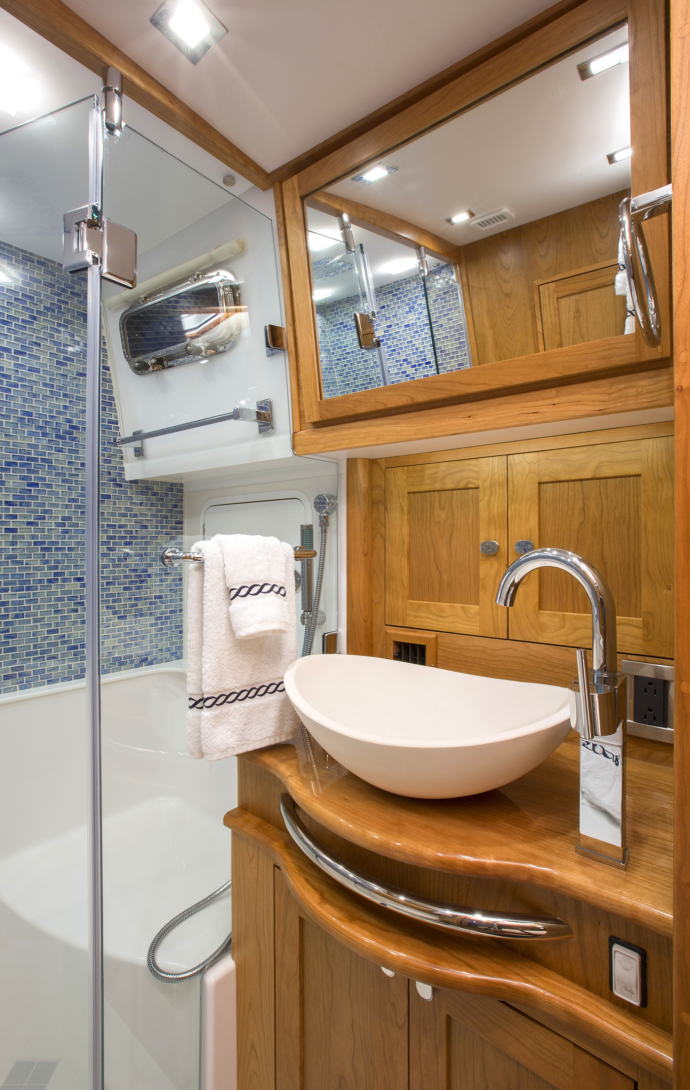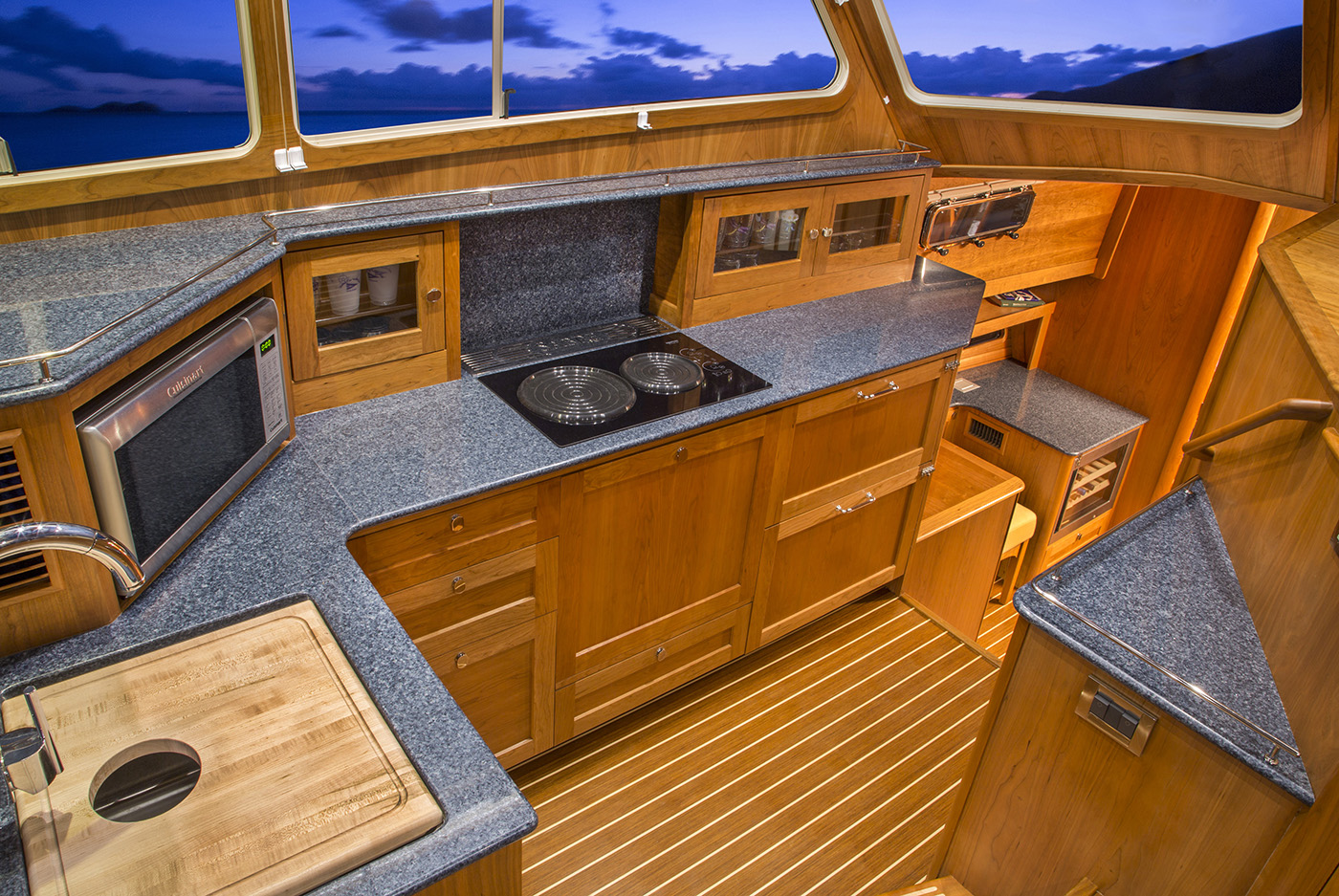 Her interior featured elegant woodwork, refined proportions, and thoughtful touches like maple inlays and Shoji screens, creating a warm, luxurious atmosphere throughout.