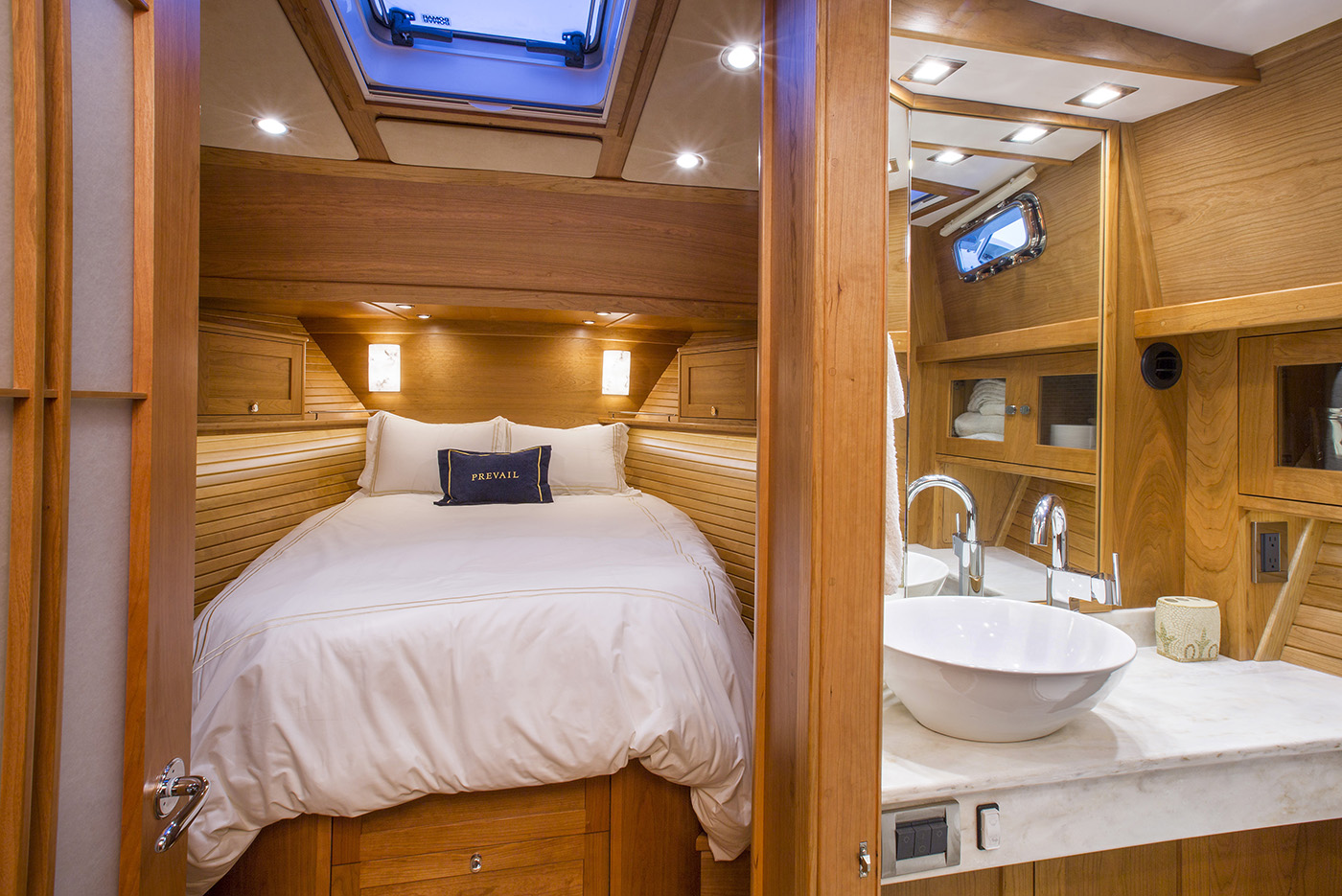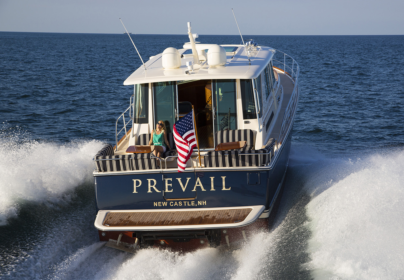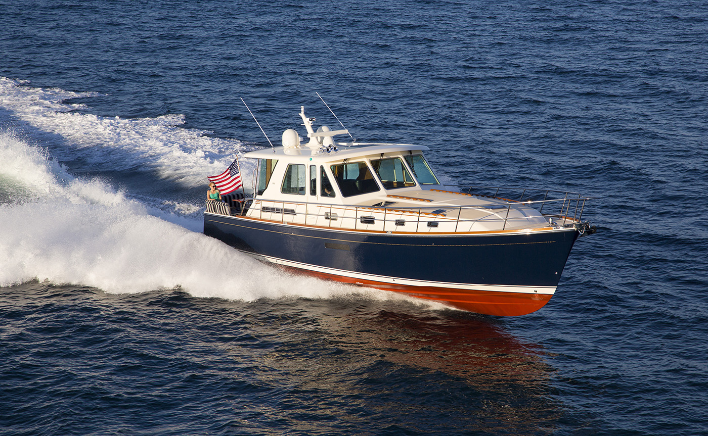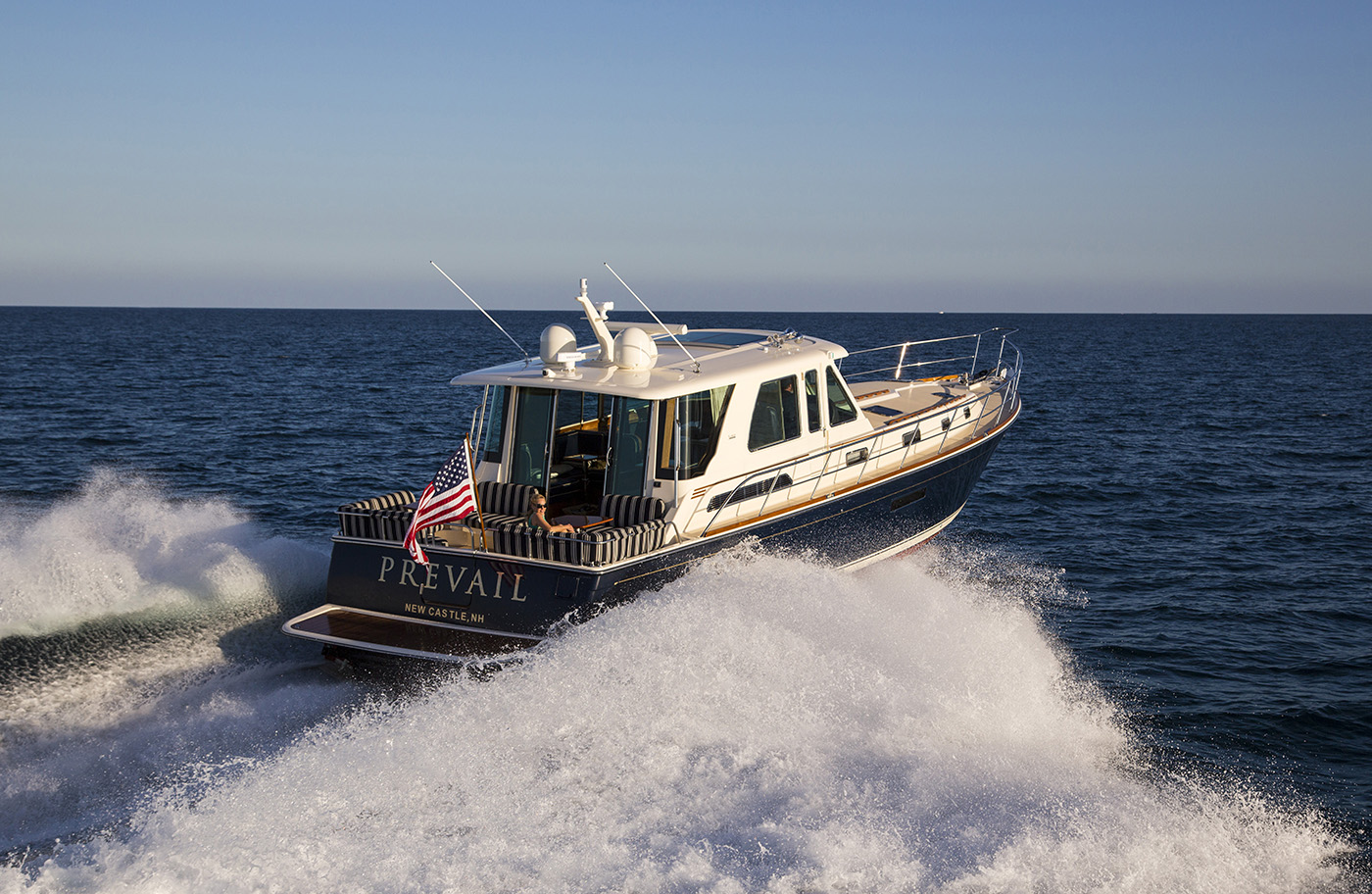 Crafted with generations of Maine boatbuilding expertise, the Sabre 54 Salon Express combined traditional craftsmanship with advanced technology to deliver an exceptional cruising experience. Outfitted with Volvo Penta IPS II 900 pod drives, she cruised comfortably in the mid-20-knot range.