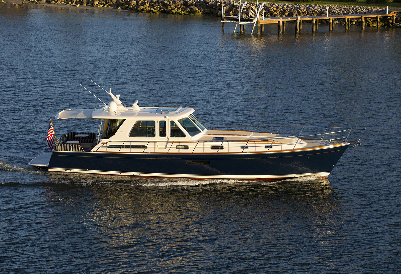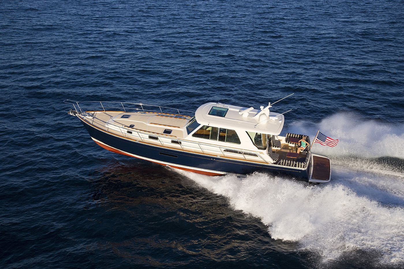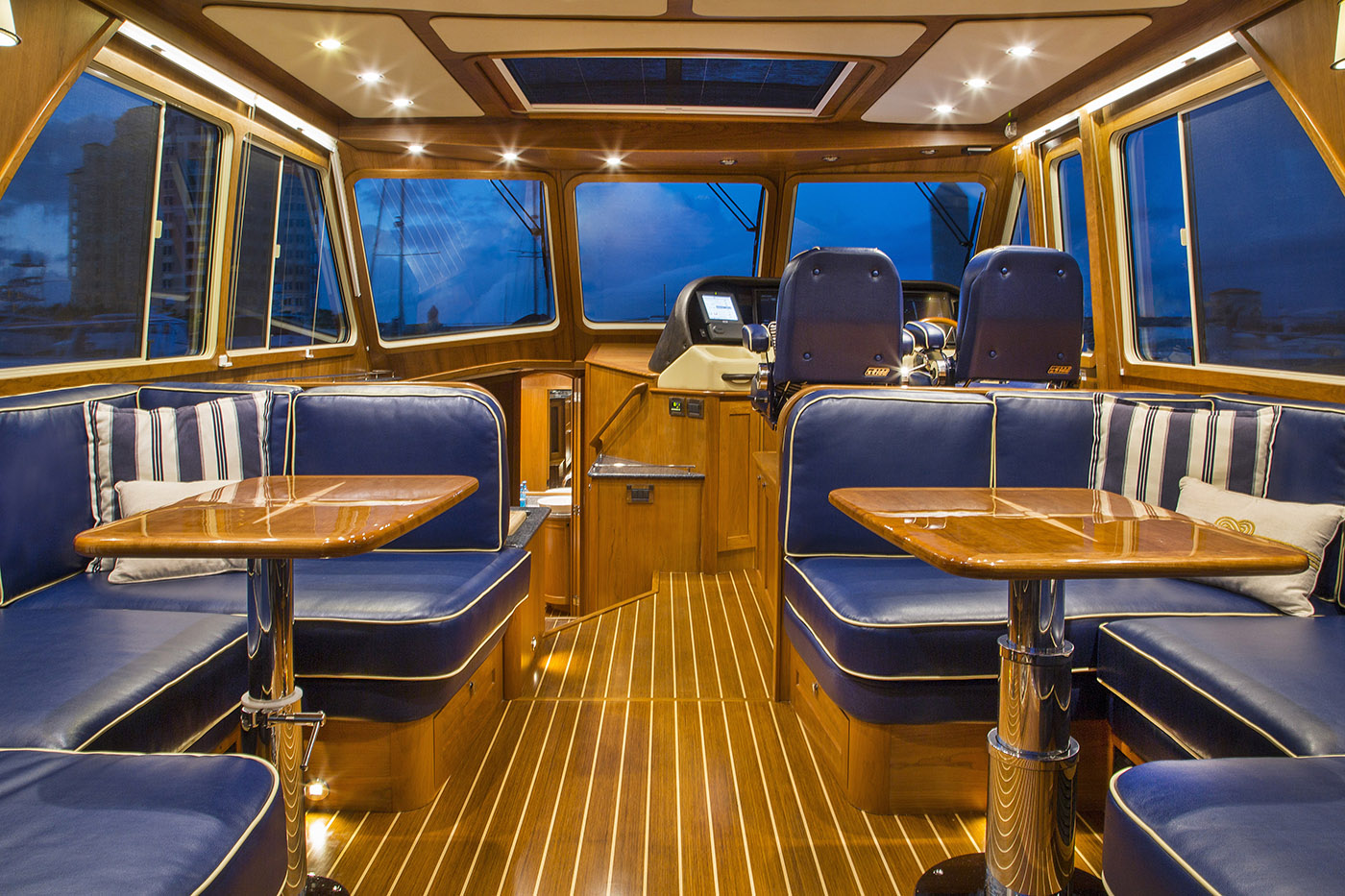 Crafted with generations of Maine boatbuilding expertise, the Sabre 54 Salon Express combined traditional craftsmanship with advanced technology to deliver an exceptional cruising experience. Outfitted with Volvo Penta IPS II 900 pod drives, she cruised comfortably in the mid-20-knot range.